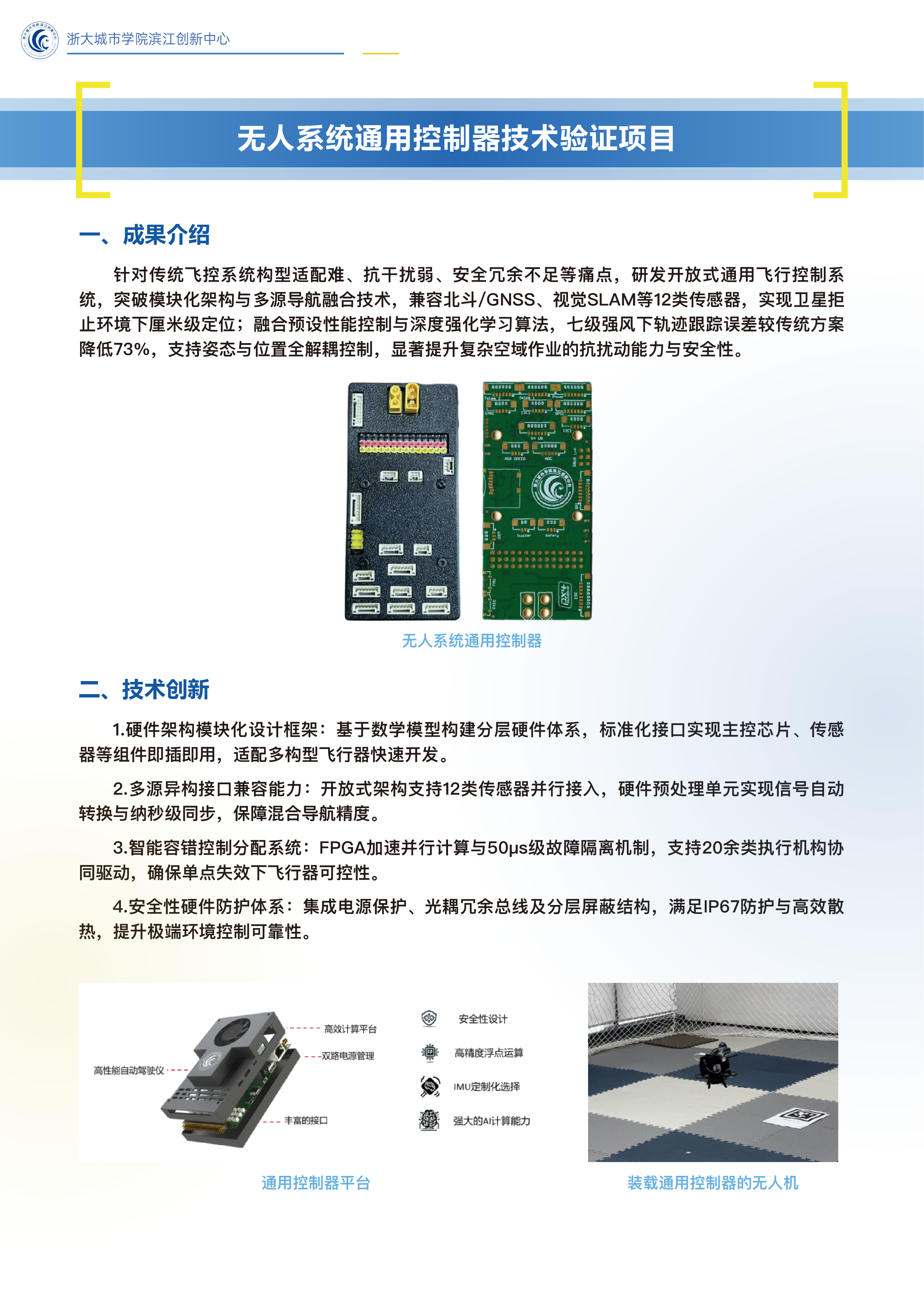 杭州市滨创低空立体交通系统概念验证中心联合高校、科研机构、产业界及投资机构等多方资源,开展概念验证项目征集、遴选与专家评审,致力于推动科技成果从实验室向应用探索迈进。现就2024年度10项优秀概念验证项目进行成果发布,涵盖低空立体交通领域的新技术、新设计、新器件、新设备及新软件方向,累计投入项目经费约500万元,形成知识产权18项,验证转化项目数5项,为行业技术探索与转化提供实践参考。